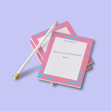 Unser gesamtes Schulsortiment kann von Ihnen individualisiert werden. Sie können von den kleinsten Stiften und Blöcken bis hin zu den größten Leichtschaumplatten sowie Sporttaschen und mehr alles mit Namen, Schullogo und -farben sowie vielen weiteren Personalisierungs-Elementen verzieren. Sollten Sie dabei Unterstützung benötigen, stehen Ihnen unsere Designprofis tags wie nachts mit Rat und Tat zur Seite.