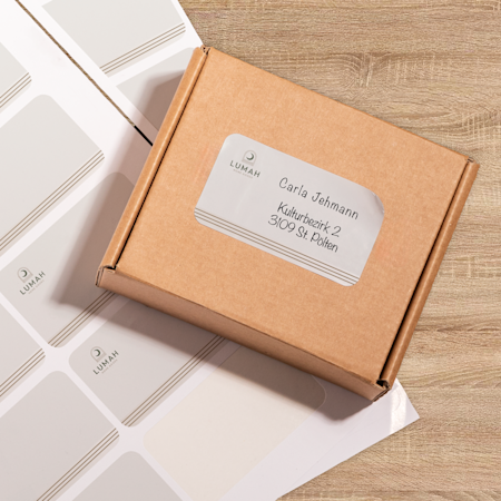 Auch für Aufkleber gilt: klein, aber oho! Mit personalisierbaren Aufkleberbögen können Sie schnell und einfach Branding, Informationen und Unternehmensdetails auf Produkten, Dokumenten und mehr anbringen. Ihre Kunden lieben durchdachte Details: Versiegeln Sie Geschenktüten und verzieren Sie Bestellungen mit personalisierten Aufkleberbögen mit Ihrem Logo. Sie versenden viele Rechnungen oder Online-Bestellungen? Erstellen Sie große Adressaufkleber und Adressaufkleber in Ihrem Markendesign für ein einheitliches Aussehen.