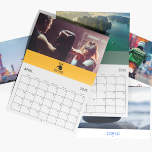 Nein. Die Wandkalender nach Themen enthalten vorausgewählte Fotos, aber Sie können jeder Seite Ihr Logo hinzufügen.