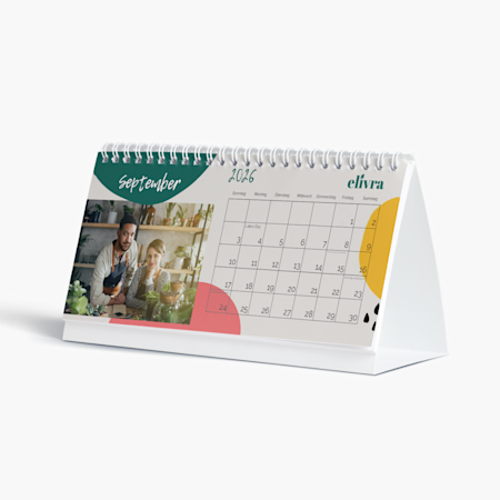 Tischkalender: Erhältlich in zwei Größen stellen Tischkalender einen praktischen wie ansprechenden Blickfang fürs Büro dar. Lassen Sie einen Kalender für einen netten Menschen drucken oder gleich mehrere für Ihr ganzes Team.
