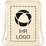 Fördern Sie das umweltbewusste Image Ihrer Marke mit dem Kordelzug-Rucksack Orissa. Der robuste Rucksack aus strapazierfähiger Biobaumwolle ist mit bis zu 5 kg belastbar und ideal für die sichere Aufbewahrung wichtiger Habseligkeiten unterwegs. Außerdem ist der Artikel ganz einfach zu personalisieren – nutzen Sie unser intuitives Studio, um Ihr Logo, Ihre Botschaft oder Ihre Firmeninfos hinzuzufügen. Benötigen Sie Unterstützung? Unsere Designprofis helfen Ihnen gern dabei, Ihre Ideen umzusetzen.