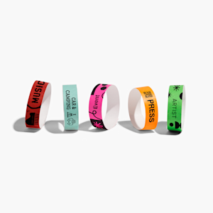 Die Armbänder bestehen aus Tyvek® – einem strapazierfähigen, leichten Material, das außerdem wasserabweisend ist. Auch wenn sie nicht vollständig wasserfest sind, halten sie Regen, verschütteten Flüssigkeiten oder feuchten Umgebungen (wie etwa Wasserparks) stand. Unsere personalisierbaren Eintrittsarmbänder aus Tyvek sind so konzipiert, dass sie bei normaler Nutzung auf Events nicht reißen.