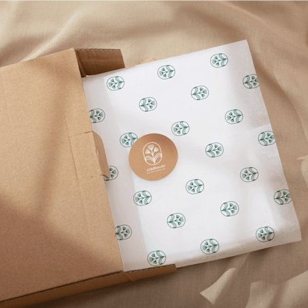 Innenwirkung: Auch die Präsentation des Inhalts macht viel aus. Verwenden Sie daher Seidenpapier mit Logo oder geschreddertes Papier-Füllmaterial. So stimmt die Optik und Ihre Waren bleiben geschützt.