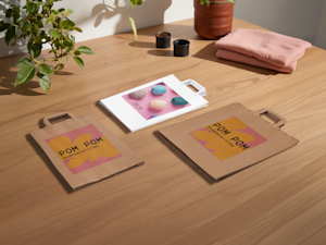 Bei VistaPrint finden Sie viele verschiedene Stile an Designvorlagen für Kraftpapiertaschen ohne Bodenfalte.