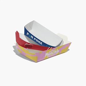 Diese Papptabletts sind ein praktisches und vielseitiges Marketingwerkzeug, das viele Bestellungen perfekt präsentiert. Sie bieten die perfekte Größe für Hotdogs, Corndogs, Churros, eignen sich aber auch für viele weitere Gerichte und Köstlichkeiten, darunter Pommes Frites, Hähnchenschlegel, Sushi, Muffins und mehr. Indem Sie Tabletts mit Ihrem Branding gestalten, sorgen Sie für ein einheitliches Markenerlebnis, was beim Etablieren einer besseren Kundenbeziehung hilft.