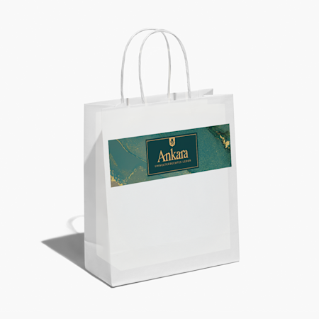 Tüten lassen sich zwar nicht ganz so einfach wie Schachteln dekorieren, aber mit Aufklebern können Sie viel bewirken. Seidenpapier mit Logo schützt Ihre Produkte nicht nur, sondern macht optisch auch richtig etwas her. Und für den letzten Feinschliff können Sie Geschenkband, Etiketten und Produktanhänger mit Folienprägung nutzen.