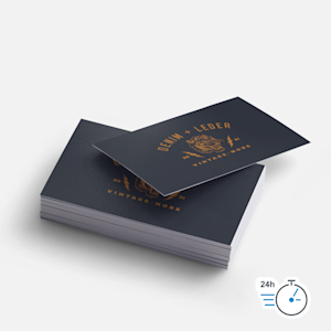 Elegant und seriös, witzig und auffällig oder clean und minimalistisch – auch die Visitenkarten mit Lieferung am nächsten Werktag können kinderleicht an Stil, Aussehen und Branding Ihrer Marke angepasst werden. Wählen Sie zwischen Standard- (300 g/m²) und Premium-Papier (360 g/m²).