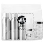 Dieses Reiseetui ist ideal für die Mitnahme im Flugzeug und umfasst mehrere Behälter für ihre Pflegeprodukte und Kosmetik. Was wünscht man sich mehr? Passen Sie es mit Ihrem Logo individuell an und bewerben Sie Ihre Marke weltweit.