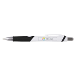 Steigern Sie die Sichtbarkeit Ihrer Marke mit diesem eleganten Kugelschreiber mit Druckmechanik. Mit verchromter Spitze und Gummigriff für ein geschmeidiges Schreibgefühl.