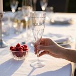Diese Flöte zum online Gestalten darf bei besonderen Ereignissen nicht fehlen, ob romantisches Abendessen oder Feier. Das klassische Design rundet jedes Tischgedeck elegant ab und ist für jede Art von Veranstaltung geeignet. Sie möchten einen Toast ausbringen? Halten Sie das Ereignis fest, indem Sie die Flöten mit einem Datum oder einer Botschaft gestalten. Über ein Geschenk wie dieses freuen sich alle Anwesenden. Und wenn Sie Unterstützung brauchen oder Fragen haben, ist unser fachkundiges Team für Sie da.