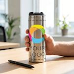 In diesem doppelwandigen Isolierbecher bleiben Ihre Lieblingsgetränke stets auf der perfekten Temperatur. Das praktische Design mit aufklappbarem Deckel macht ihn ideal für den Weg zur Arbeit, Outdoor-Abenteuer oder zum Genießen von Getränken am Schreibtisch, ohne sich Gedanken über ein Verschütten machen zu müssen. Außerdem ist der Artikel ganz einfach zu personalisieren – nutzen Sie unser intuitives Studio, um Ihr Logo, Ihre Botschaft oder Ihre Firmeninfos hinzuzufügen. Benötigen Sie Unterstützung? Unsere Designprofis helfen Ihnen gern dabei, Ihre Ideen umzusetzen.