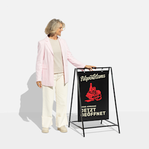 Kundenstopper sind sehr vielseitig: Sie können damit auf Angebote oder neue Produkte aufmerksam machen, Ihre Öffnungszeiten angeben, den Kundenfluss lenken oder Passanten begrüßen. Besonders praktisch ist, dass sie sich sowohl für die Verwendung im Innenbereich als auch im Außenbereich eignen und ganz anders wahrgenommen werden als Schilder oder Schaufensterplakate.