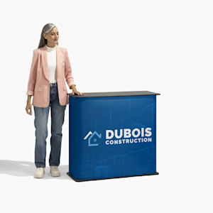 Mit eckigen tragbaren Theken steigern Sie die Bekanntheit Ihrer Marke überall. Ob an einer Messe, einem Pop-up- oder Ladenevent – diese Theken bieten eine stabile Oberfläche, um Produkte und Marketingmaterialien professionell zu präsentieren oder Kunden zu empfangen. Das eckige Design bietet jede Menge Platz für Präsentation und Aufbewahrung, damit Sie alles Wichtige immer zur Hand haben und trotzdem alles geordnet bleibt.