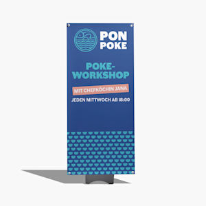 Möchten Sie mit dem Gestalten Ihres X-Banners Outdoor gleich beginnen? Sehen Sie sich die individuell anpassbaren, branchenspezifischen Vorlagen in unserer Galerie an oder laden Sie Ihr eigenes Design hoch. Nachdem Sie die Bestellung aufgegeben haben, kümmern wir uns um den Druck und Versand Ihres Werbebanners. Sie müssen es dann nur noch auspacken und aufstellen, ob drinnen oder draußen – ganz unabhängig vom Wetter.